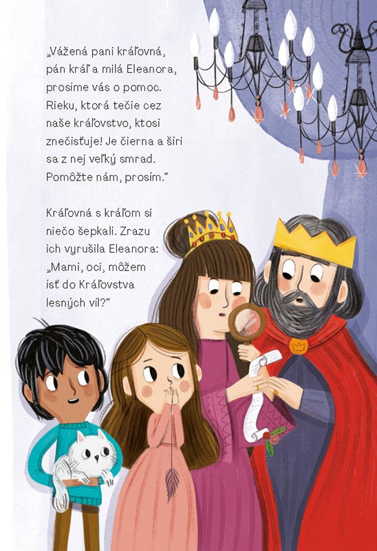 „Vážená pani kráľovná, pán kráľ a milá Eleanora, prosíme vás o pomoc. Rieku, ktorá tečie cez naše kráľovstvo, ktosi znečisťuje! Je čierna a šíri sa z nej veľký smrad. Pomôžte nám, prosím.“