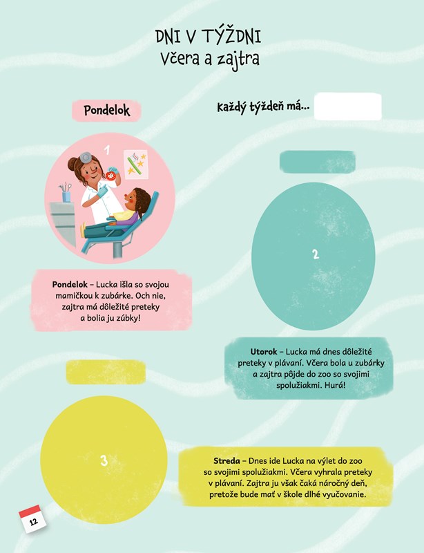 Čítanie so samolepkami je zábava! Čo stránka, to nové možnosti na spoznávanie a tvorenie. Vďaka samolepkám môžu deti vytvárať rôzne scenérie a pritom sa dozvedieť veľa zaujímavostí o čase. Práca so samolepkami pomáha rozvíjať kreativitu, predstavivosť a jemnú motoriku. Zamestná deti na niekoľko hodín a učenie rozhodne nebude nuda!