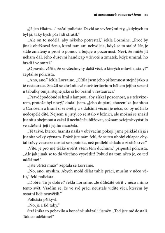 Manželé Ed a Lorraine Warrenovi se věnovali vyšetřování nadpřirozena téměř padesát let. Provedli stovky exorcismů, mnoho spiritualistických seancí a jejich přednášky pomohly mnoha lidem pochopit, jak nebezpečný může být pokus o kontakt s nadpřirozeným světem. Kniha Posmrtný život prozkoumává tajemství nejdůležitějších případů, které osobně zkoumali. Na základě několika z nich byly natočeny slavné filmy, například Horor v Amityville, V zajetí démonů, The Tormented a Annabelle. Warrenovi také vysvětlují, kdy se poprvé setkali s nečistými silami a co obnáší být démonologem. Je to také pokus odpovědět na otázku, co říká moderní věda o nadpřirozených jevech. Nadpřirozené záhady se objevují napříč mnoha kulturami. Ed a Lorraine Warrenovi znovu otevírají bránu do světa, který od úsvitu věků v člověku vyvolává hluboké zamyšlení a... hrůzu.