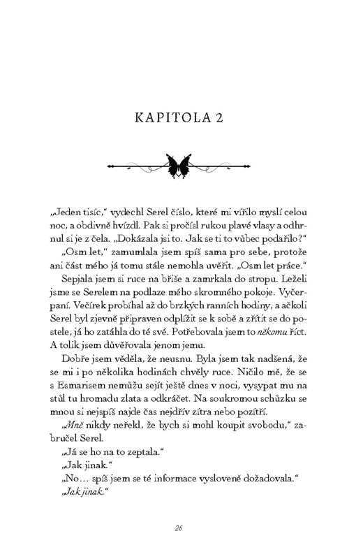 Tisaanah se však nezastaví před ničím, dokud nezachrání ty, které opustila. I když to znamená hrát smrtící hry řádů. I když bude muset obětovat své srdce. I když bude muset ovládnout samu smrt.