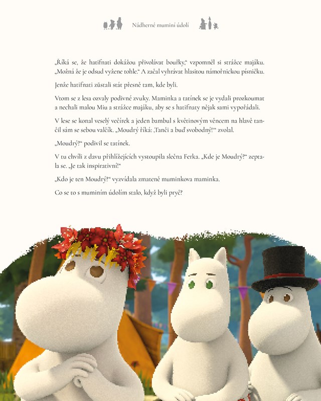 Mumini jsou zpět v nádherném muminím údolí. Ale co to? V údolí nic není jako dřív! Přidejte se k nám a seznamte se s jejich novými kamarády Ferkem a Stinkym. Přečtěte si, jak se mumini vypořádali s hatifnaty nabitými elektřinou, uspořádali večírek nebo uskutečnili odvážnou neloupež.