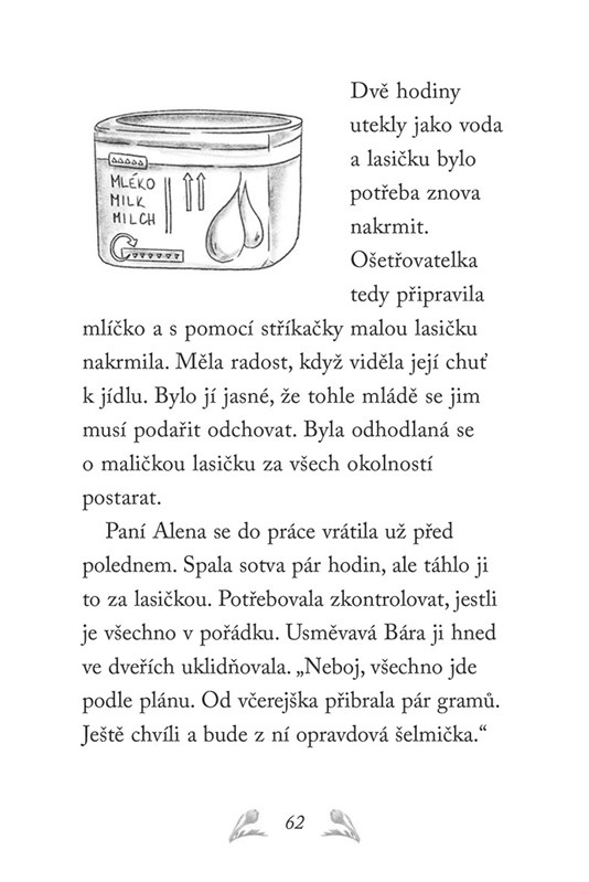 Když sourozenci Jirka s Anetkou narazí během rodinného výletu na malou lasičku, nevědí, co s ní. Pan učitel, kterého poprosí o radu, usoudí, že pokud chtějí zvířátku pomoct, je třeba zavolat záchrannou stanici. Přivolaný záchranář se domnívá, že mládě lasice kolčavy ztratila jeho maminka, když přenášela mladé, a že bez lidské pomoci nepřežije. Zvládne zesláblá lasička krmení náhražkou mateřského mléka? Zotaví se natolik, aby zesílila a vrátila se do volné přírody?