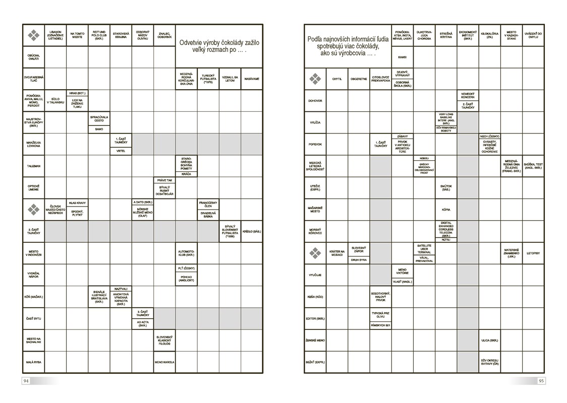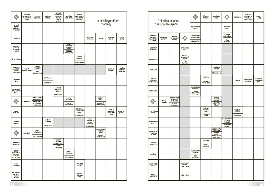 Ak aj vy patríte medzi milovníkov lúštenia a čokolády, potom si tieto nové krížovky plné sladkých zaujímavostí o jednej z najobľúbenejších dobrôt určite zamilujete. Tak na čo ešte čakáte? Pohodlne sa uvelebte, rozbaľte si tabuľku lahodnej čokolády a pustite sa do lúštenia. Mňam!
