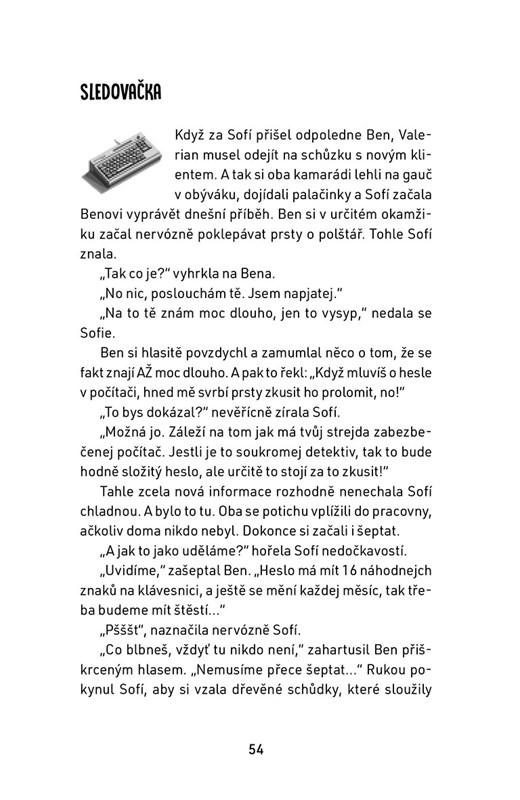 Ajťácká detektivka kombinuje dobrodružný příběh s praktickou výukou informatiky. Každá kapitola tě vtáhne do děje a zároveň naučí základům práce s počítačem. Díky speciálním kódům v knize se dostaneš k videím, kterými tě provede lektor informatiky – postupně si vyzkoušíš programování, tvorbu grafického designu, využití umělé inteligence a mnoho dalšího.