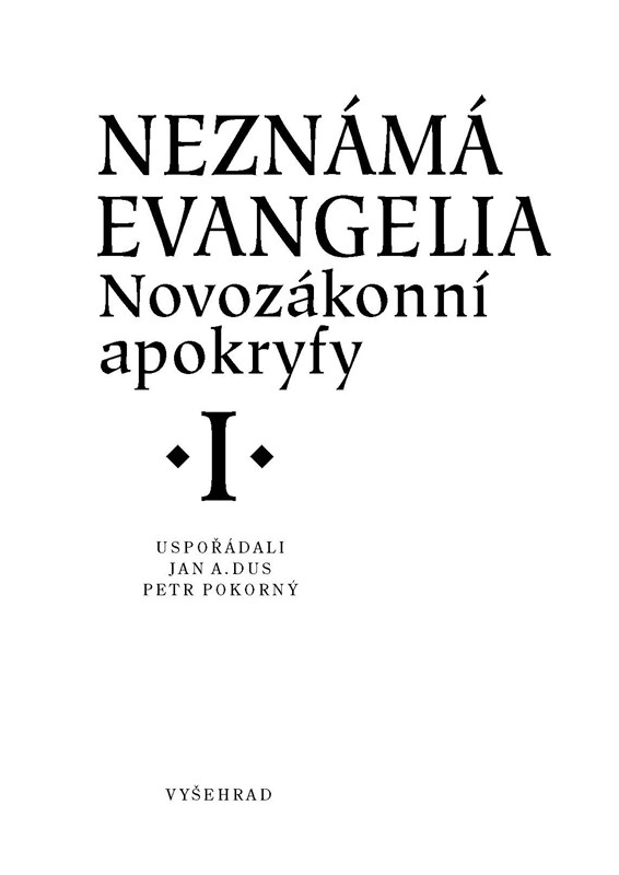 Apokryfní texty vznikaly již v počátcích křesťanského písemnictví a nebyly z různých důvodů zařazeny do biblického kánonu: často pro svůj pozdější původ, většinou však pro odchylný výklad nejstarších křesťanských tradic. Kniha obsahuje apokryfní evangelia v užším smyslu slova, tedy spisy evangelijního typu nebo spisy jiného druhu, které se šířily pod názvem „evangelium“ a vznikaly do konce 2. století po Kr. Mezi ně patří i nejstarší fragmenty Ježíšových výroků, které nepocházejí z biblických evangelií, či oblíbené Tomášovo evangelium. Na mnoha místech sice jen popustily uzdu obrazotvornosti tehdejšího lidového křesťanství, nicméně odrážejí i některé závažné problémy své doby (vztah k jiným náboženským a filozofický proudům, hledání lidových forem křesťanské zbožnosti). Z řeckých, latinských, koptských a syrských originálů přeložili a úvody a komentáři opatřili J. Brož, R. Dostálová, J. A. Dus, M. Havrda, L. Kopecká, Z. Kratochvíl, P. Peňáz, D. Peňázová, P. Pokorný a Z. Vlčková.