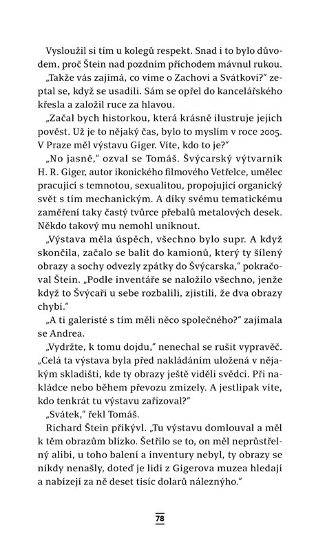 Šestý případ je pro kriminalistu Tomáše Volfa tím, který ho nejvíce ovlivnil. A to hned v několika směrech. Vše odstartuje nález dodávky odstavené na okraji jihomoravského lesa, která ukrývá hrůzný náklad. Tomáš Volf rozplétá případ, jehož stopy vedou i do Prahy a zahraničí. Vše má pod kontrolou sympatická komisařka z Brna a do kontroverzního světa moderního umění a podezřelých obchodních transakcí pronikne i Tomášova bývalá policejní parťačka Eva Černá. Jednotlivé linky tohoto případu spojují události kolem obrazu s poněkud nejasným obsahem, zato s jasnou hodnotou. Nejen obraz má totiž svoji odvrácenou stranu... Jiří Březina čtenáře opět vede k nečekanému rozuzlení.