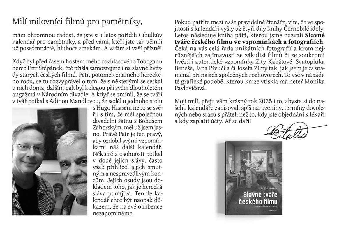 V pořadí již 17. Cibulkův kalendář pro pamětníky budou tentokrát doprovázet vzpomínky oblíbeného herce Petra Štěpánka