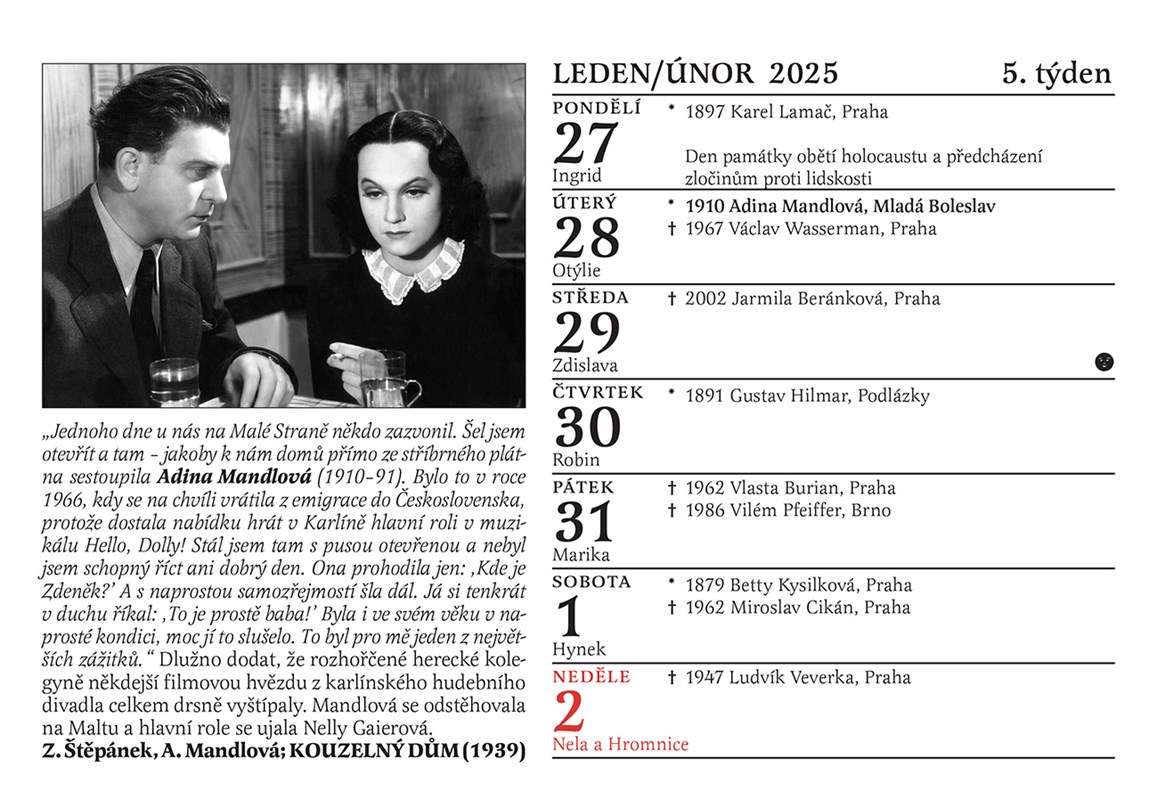 Tento kalendář vzdává hold všem umělcům, kteří svým herectvím zazářili natolik, že je stále máme ve svých srdcích a i po letech na ně rádi vzpomínáme.