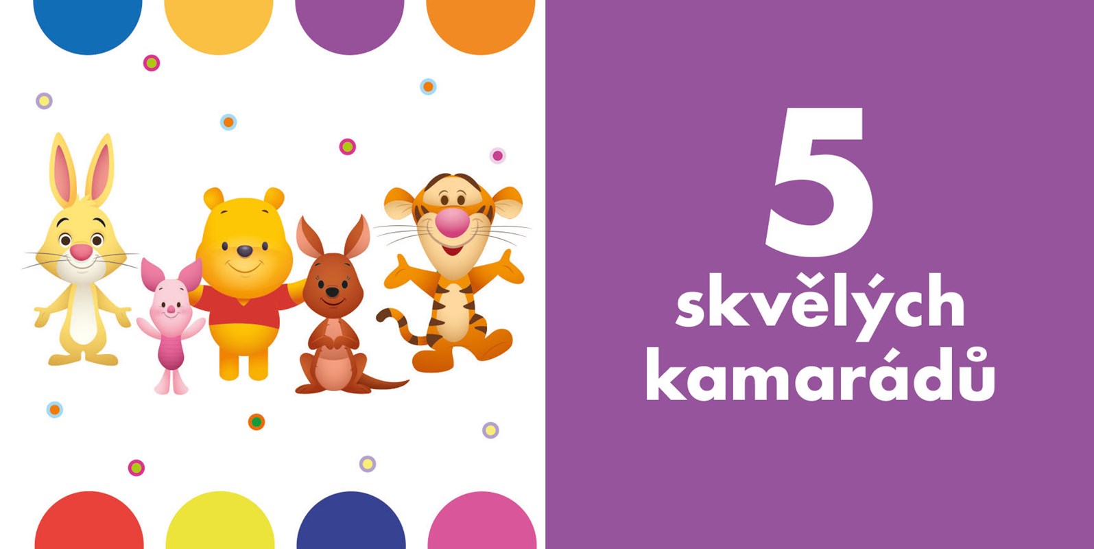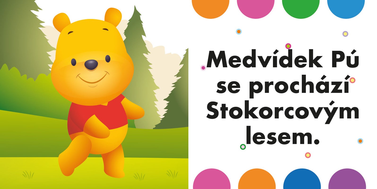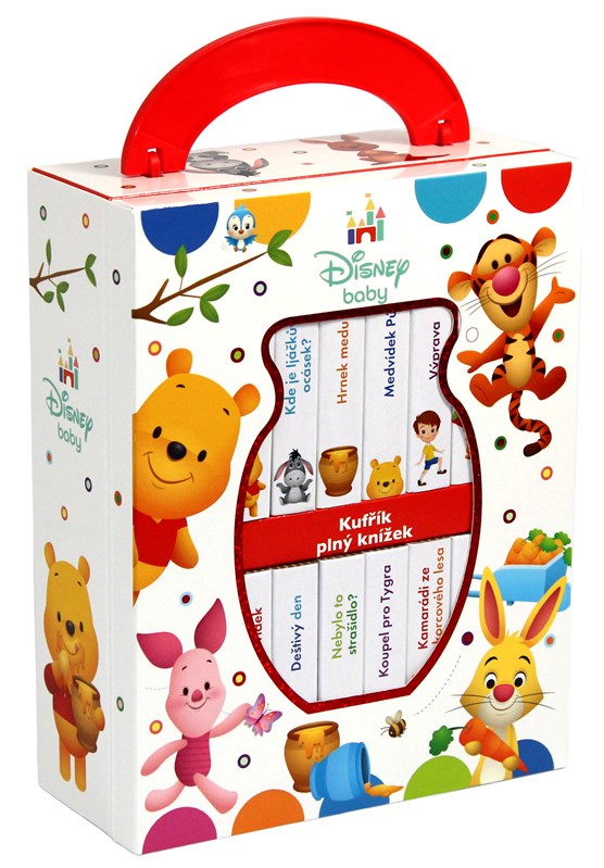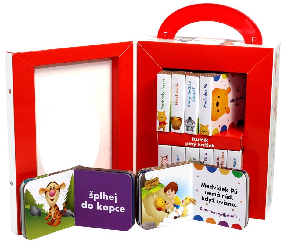Najdete v něm 12 pevných knížek, které odolají zvídavým dětským ručičkám. Společně si v nich přečtete roztomilé příběhy Medvídka Pú a jeho kamarádů ze Stokorcového lesa v kombinaci s prvky prvního učení. První čtení – vesele a hravě s Medvídkem Pú!