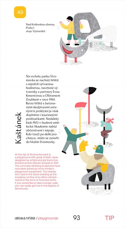 Průvodce pro děti a rodiče, Meandry Prahy, se snaží ukázat mater urbium očima místních obyvatel: spisovatelů, výtvarníků, teoretiků, ale také odborníků přes jídlo (a žádná procházka tak nemusí končit prázdným žaludkem!), kteří zde žijí a tvoří a vychovávají své děti a potkávají se na kafe a občas také bloudí. Přinášíme vám nonkonformní kapesní řešení, jak vidět Prahu zase trochu jinak. Díky Meandrům Prahy můžete načerpat inspiraci z míst, kde dost možná budete úplně sami, případně zavítáte na slavné lokace z literárních děl, která vlastně ani nemusejí existovat. Určitě zde ale najdete doporučení na kvalitní i oblíbená knihkupectví, galerie, dětská hřiště anebo malá občerstvení. Role průvodce pro nejmenší cestovatele se ujal kačer divoký — rodák z pod oblouku Karlova mostu na staroměstském břehu Vltavy. Kačer Karlík dává dětem tipy na místa, kde si nejlépe pohrají a nebudou se nudit. Hledejte kačírka na stránkách našeho průvodce, aby vám neuletěl ani jeden z jeho osvědčených tipů!