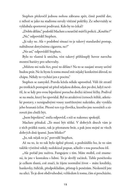 Mrtvola nalezená pod útesem. Žena s podřezanými žílami ve vaně. Muž zabitý elektrickým proudem. Série podivných sebevražd přivede vyšetřovatele Luca Callanacha a Avu Turnerovou k myšlence, že za činy se skrývá sériový vrah s mrazivou schopností zinscenovat místo neštěstí. Jak si vybírá své oběti a kdo další je na řadě? Zabiják s pokřivenou myslí získává s každým zmařeným životem víc sebevědomí a Luc ani Ava netuší, jak blízko kolem nich krouží…