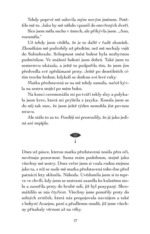 Sylina obětovala bohyni osudu svou duši, svobodu i zrak. Ze zbídačeného sirotka se vypracovala v disciplinovaného zabijáka s jediným cílem: svrhnout tyranského vládce království Glaea. Když však k jeho břehům připluje brutální upíří dobyvatel, dostane Sylina ještě nebezpečnější úkol: infiltrovat armádu, získat jeho důvěru... a zasadit smrtící úder. Ale Atrius má v sobě něco temného, co Sylinu nečekaně přitahuje. Rozkazy zní jasně, ale zakázané spojení mezi nimi sílí. Co vše kvůli tomu skončí v plamenech?