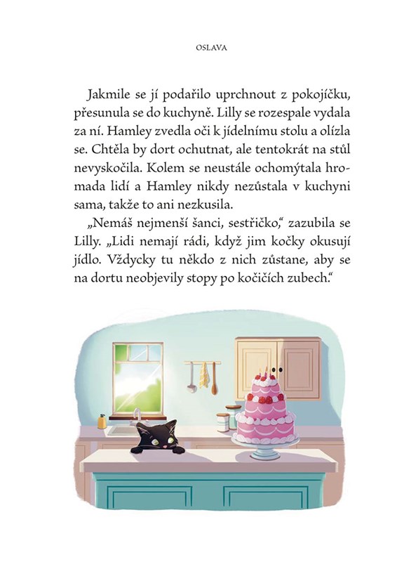 Hamleyina lidská panička Violka má narozeniny. Chystá se oslava a samozřejmě dort. Když si ostatní kočky povzdechnou, že zvířátka dort nedostávají a jejich narozeniny nikdo neslaví, Hamley se to rozhodne změnit. Jenže kde vzít dort upečený na míru mlsným kočičím jazýčkům? Zvládne se zvědavé kotě dostat do místní pekárny?