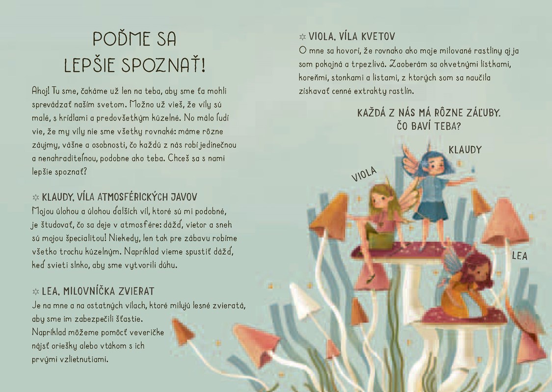 1 obrázkovú knižku o vílach a ich jedinečných vlastnostiach.