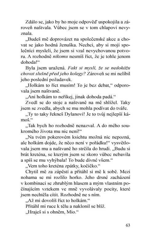 Christopher Laurent, CEO známé právnické firmy, se musí do svých třicátých narozenin oženit, jinak přijde o všechno. Mie Meyerové zase chybí peníze na zaplacení otcových dluhů. Obětuje svou svobodu za tučnou částku, která vyřeší její problémy? Prsten by si možná nasazovala o něco ochotněji, kdyby nešlo zrovna o něj! Z hluboké nenávisti vzplane divoká vášeň a hranice vytyčené předmanželskou smlouvou se začínají překračovat. Z falešného vztahu vzniká rodina, kterou ani jeden z nich nikdy neměl. Zvládnou ale spolknout lži, kterými se navzájem krmí?