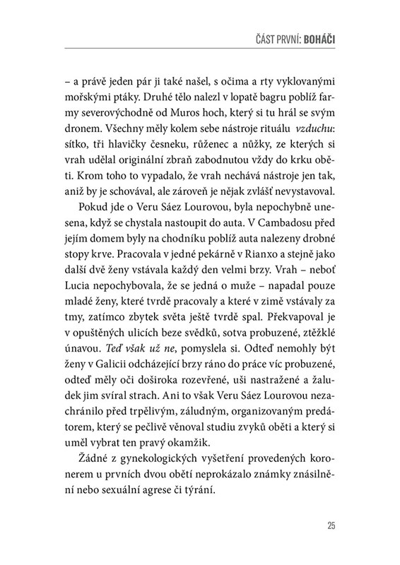 Neznámý útočník v Galicii vraždí ženy, které každý den brzy ráno pospíchají do zaměstnání. Jsou nenápadné. Neviditelné. Zničehonic doslova vymazané z našeho světa... V Madridu zatím útočí velmi nebezpečný atentátník na vybrané miliardáře a zanechává na zdech jejich rezidencí krátký, ale výmluvný vzkaz: SMRT BOHATÝM. Dva na první pohled rozdílné světy dvou různých zabijáků mají jedno společné – bezprecedentní a výbušnou konfrontaci společenských vrstev moderní Evropy. Vyšetřovatelka Lucia rozehrává vysokou hru. Kdo v ní ale hraje oběť a kdo lovce? Není komisařka nakonec jen pouhou hračkou v rukou nelítostných vrahů?
