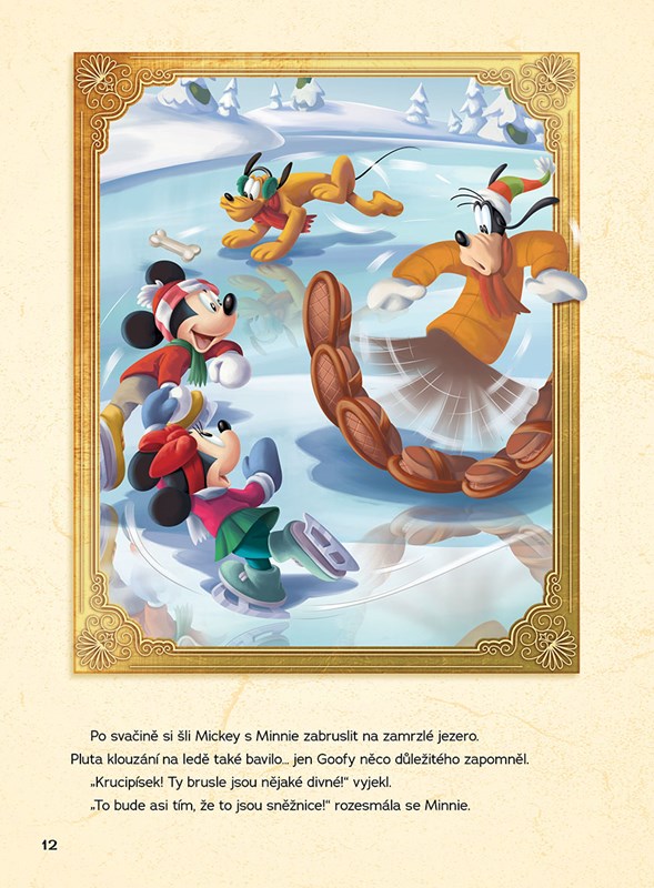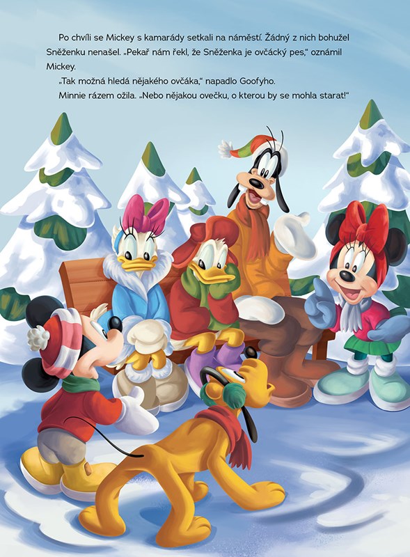 Užijte si pohádkové Vánoce s oblíbenými animovanými hrdiny! Vydejte se Mickeym a všemi jeho kamarády na báječné zimní prázdniny na chatě v horách a pomozte jim při napínavém pátrání po ztraceném štěňátku jménem Vločka nebo si přečtěte, jak se Mickey vypravil s Minnie do města na nákup vánočních dárků a na představení Louskáčka. S knížkou plnou krásně ilustrovaných pohádek o nezapomenutelných dobrodružstvích Disneyho postaviček tu Vánoce budou cobydup!