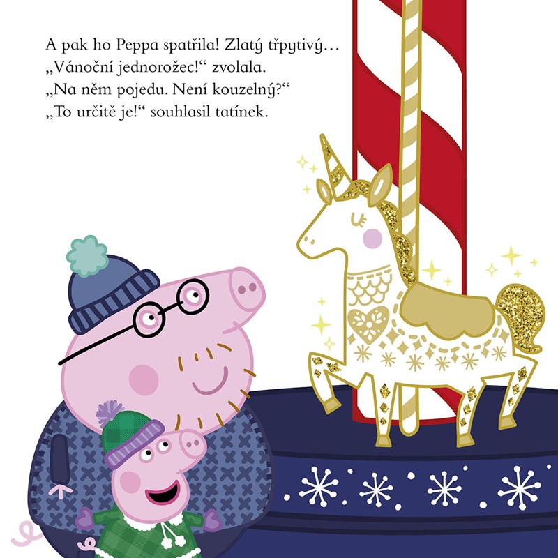 Blíží se Štědrý večer a Peppa s rodinou vyráží na vánoční trhy. Čeká je tam spousta stánků a taky kolotoč s kouzelným jednorožcem! Jaká další vánoční kouzla Peppa zažije?