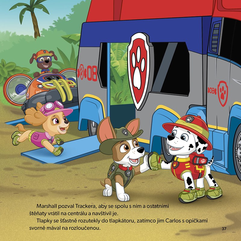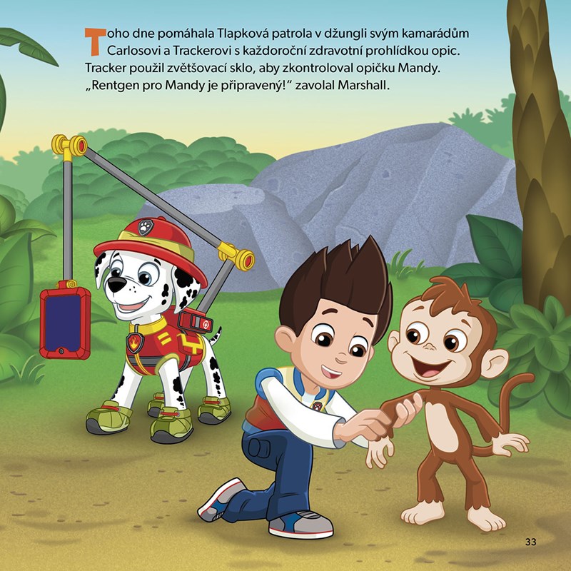 Tlapková patrola spěchá pomáhat v napínavých příbězích na motivy animovaného seriálu! Přiložte tlapku k dílu a vydejte se s oblíbenými záchranářskými štěňaty na výpravu do džungle. Čekají vás dvě pohádky o dobrodružných příhodách sehraného týmu známých hrdinů. Přečtěte si, co všechno zažili, když se vypravili po stopách neznámého zvířete, nebo jak dopadla lékařská prohlídka u opiček. Odvážné tlapky už se ženou!