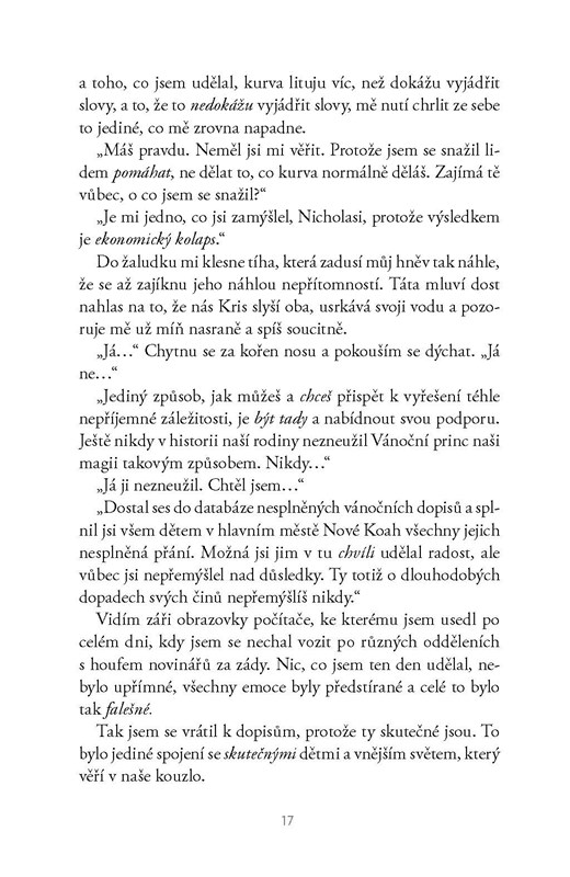 Nicholas „Coal“ Claus dřív Vánoce miloval. Pak jeho otec, úřadující Santa, proměnil celé svátky v PR škvár. Uhlík podnikne cokoli, jen aby se té šarádě vyhnul, včetně toho, že se zaplete s opilým a nesmírně přitažlivým barmanem. Jako dědic vánočního trůnu je však brzy povolán, aby dostál svým povinnostem dědice: má se oženit s Iris, svou nejlepší kamarádkou a velikonoční princeznou, do které je však až po uši a vůbec ne tajně zamilovaný jeho bratr. Na obzoru je pořádný průšvih. A situaci rozhodně nevylepší to, že o Irisinu ruku se přijede ucházet i další nápadník. Coal konečně zjistí, kdo je doopravdy ten záhadný pohledný barman: Hex, princ Haloweenu. Nastane falešné soupeření mezi dvěma princi, kteří na sebe nedokážou přestat myslet, kvůli manželství z rozumu, po kterém nikdo ze zúčastněných netouží. Nakonec je z toho nejroztomilejší, nejpotrhlejší, nejnezapomenutelnější a nejvíc sexy zamilovaný příběh roku.