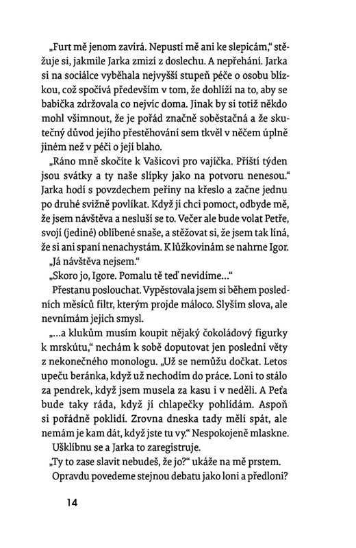 Příběh o hledání vlastní identity, o síle předsudků a odvaze postavit se nepřízni osudu tam, kde se zdá, že nic nemůže být změněno. Přestěhovat se na vesnici za partnerem Igorem se fotografce Báře zdálo jako docela dobrý nápad. Netušila ovšem, jak moc ji ovlivní odlehlost i způsob místního života. Bára si nerozumí s místními, chybí jí přátelé i starý život a doléhá na ni tvůrčí krize. Pravidelně se dostává do konfliktů s Igorovou rodinou, především s jeho matkou Jarkou, která se ji snaží dotlačit k mateřství, na něž se Bára necítí připravená. V prostředí, kde je jí všechno cizí a kde ji svírá nepochopení, ztrácí postupně nejen Igora, ale i samu sebe. Ve snaze o únik se nečekaně sblíží s Igorovou švagrovou Petrou, upachtěnou matkou dvou dětí, kterou by obyčejně pohrdala. Odhaluje však, že obrázek rodinné idyly zakrývá spoustu bolesti a manipulace.