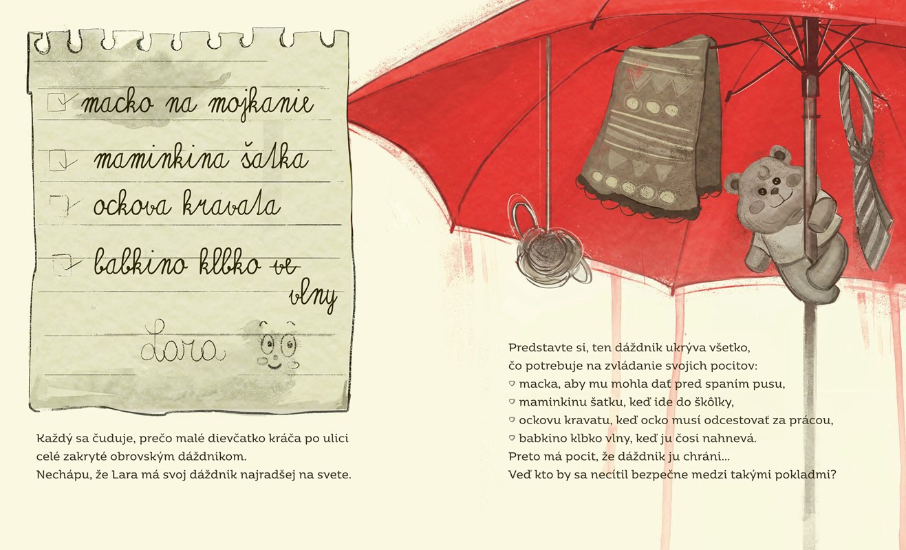 Také nesmelé, že všade chodí so svojím obrovitánskym červeným dáždnikom.