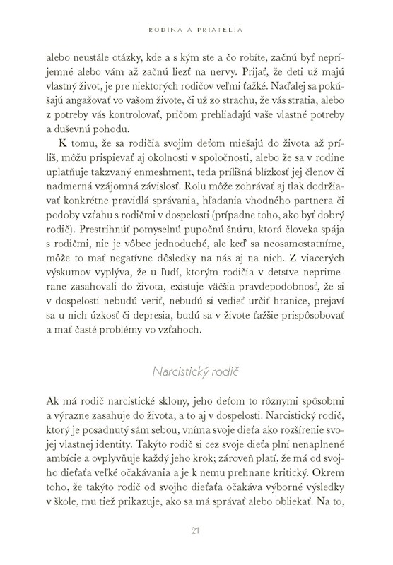 V rodinách sa často deje, že rodičia majú potrebu zasahovať do života svojich detí. Je dôležité naučiť sa spoznať túto hranicu a tiež rozpoznať varovné signály - veďprijať fakt, že deti už majú vlastný život a sú nezávislé, môže byť pre mnohých rodičov naozaj náročné. Niekedy sa môžu prejaviť aj narcistické sklony. Varovným signálom môže byť aj emocionálne zanedbávanie rodiča – prejavuje sa napríklad nedostatkom uznania, lásky či pozornosti voči dieťaťu. Vplývať na rodinnú dynamiku môžu aj vzťahy medzi súrodencami - dokonca poradie ich narodenia a vekové rozdiely. Doma a medzi priateľmi sa môžeme stretávať aj s rôznymi formami ponižovania či s prejavmi sebeckého správania.