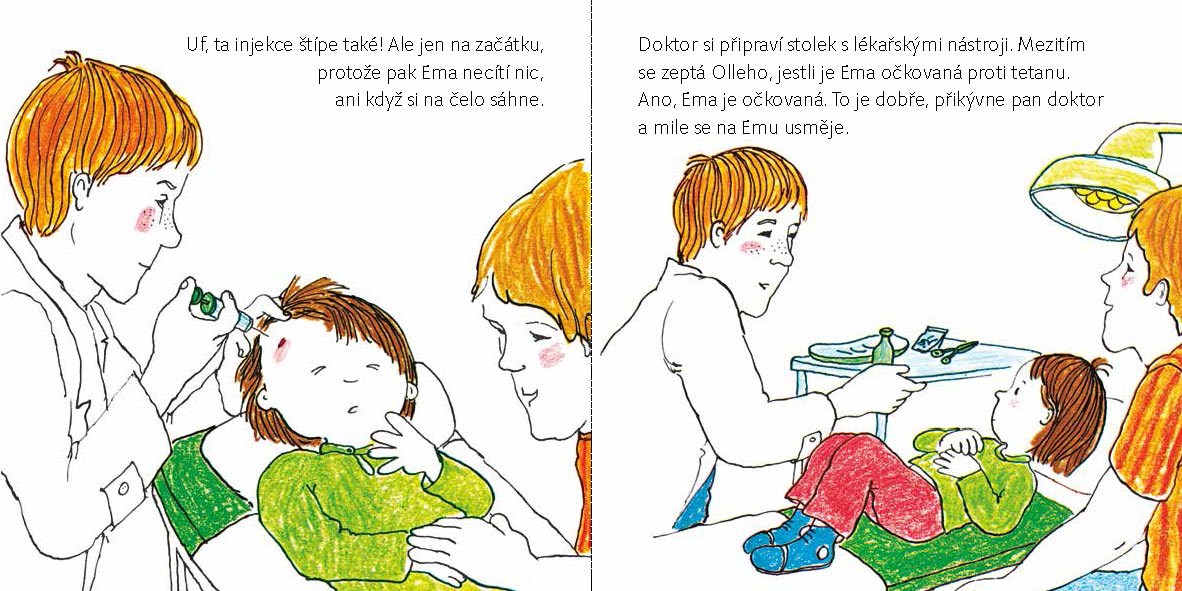 V knížce jsou dva krátké příběhy – Ema ve školce a Ema u doktora.