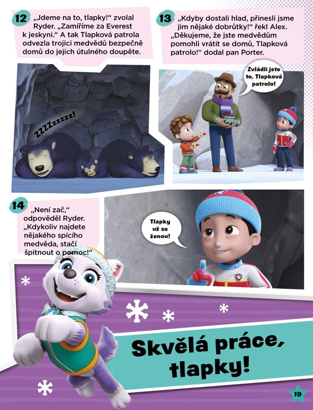 Všechny tlapky do centrály! Chcete si užít spoustu parádní zábavy? Na nic nečekejte a pusťte se s oblíbenými záchranářskými štěňaty z Tlapkové patroly do řešení zapeklitých úloh, hraní a čtení! V této knížce najdete hádanky, úkoly a příběhy a potkáte přitom všechny svoje oblíbené tlapky! Vyražte po boku animovaných hrdinů do akce a trénujte s nimi počítání, kreslení, hledání rozdílů a mnoho dalšího.