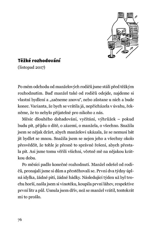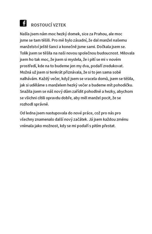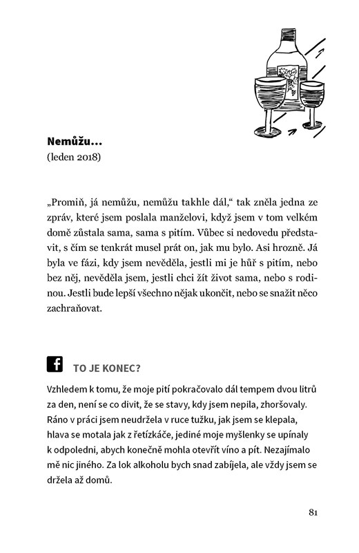 Michaela Duffková je mladá matka, která se rozhodla otevřeně promluvit o své závislosti na alkoholu i o složité léčbě. Chcete vědět, proč je tak těžké přiznat si problém s pitím? Proč není překážkou závislosti ani malé dítě? Co bylo autorce motivací k léčbě a jak vypadal první rok po ní? Všechny odpovědi přináší otevřená a přímá zpověď abstinující alkoholičky.