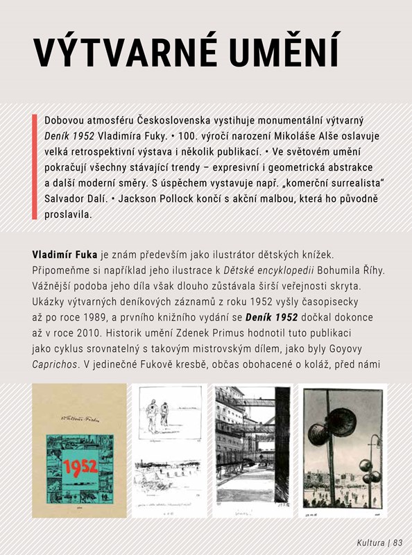 V Československu začala revoluce požírat svoje děti. Kromě mnoha jiných, nevinných obětí režimu, byli souzeni a popravováni už i čelní komunisté – v čele se samotným někdejším generálním tajemníkem strany Slánským. Češi a Slováci si museli zvyknout na marasmus doby, nekonečné fronty na různé zboží, přídělový systém, neustálou hrozbu měnové reformy i všudypřítomnou propagaci komunistického režimu. Kýčovité plakáty s rozzářenými úsměvy pionýrů, dělníků a pracujících žen kontrastovaly s každodenní zkušeností, a především s osudy mnoha tisíců pronásledovaných. Ale i do tohoto roku se vrací šťastné vzpomínky těch, kteří ho zažili. I v roce 1952 se uzavíraly sňatky, rodily děti, mladí prožívali první lásky. Na plátna se dostala kultovní pohádka Pyšná princezna, lidé si zpívali Ten umí to a ten zas tohle a se zatajeným dechem sledovali bezkonkurenční olympijské úspěchy Emila Zátopka, který se právě v roce 1952 stal světovou legendou.