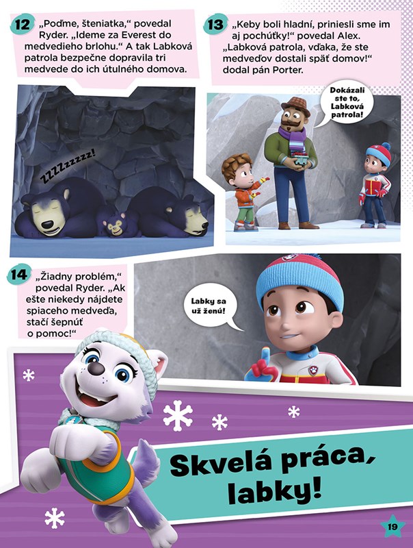 Všetky labky do centrály! Chcete si užiť veľa zábavy? Na nič nečakajte a pustite sa s obľúbenými záchranarskými šteniatkami z Labkovej patroly do hrania, čítania a riešenia zamotaných úloh! V tejto knihe nájdete hádanky, rébusy a príbehy, pri ktorých nebudú chýbať ani vaši štvornohí kamaráti! Vydajte sa po boku animovaných hrdinov do akcie a trénujte s nim počítanie, kreslenie, hľadanie rozdielov a veľa ďalšieho.