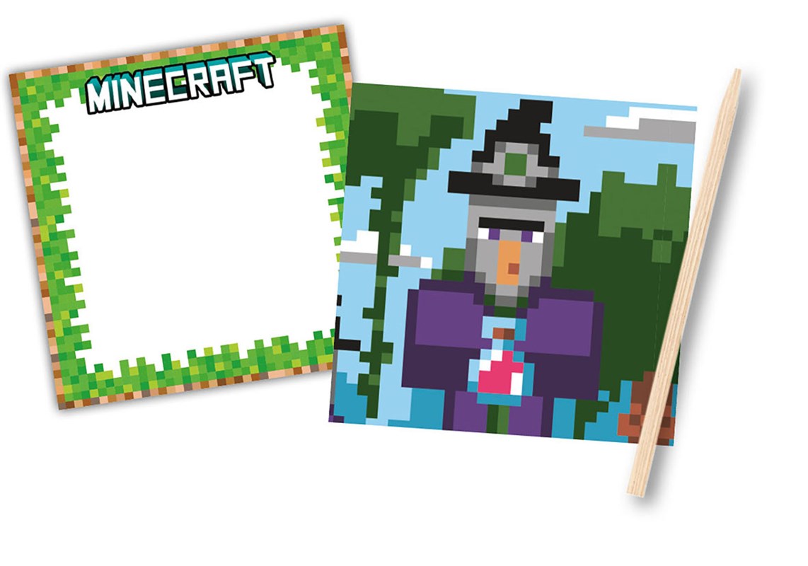 Vytvoř si neuvěřitelné minecraftové masky! Pomocí praktického škrabátka setři pixely černého inkoust...