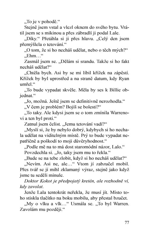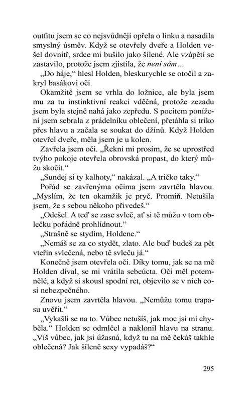 Pravidlo číslo jedna pro randění se sestrou nejlepšího kamaráda: Nedělejte to. Prostě to nedělejte. Hlavně když je váš nejlepší kamarád mrtvý a slíbili jste mu, že budete jeho mladší sestru hlídat jako oko v hlavě, ale ne po ní oči házet. Já, Holden Catalano, jako muzikant, jehož nejdelší vztah trval šest týdnů, jsem byl poslední chlap na Zemi, který by se měl kolem Laney Ellisonové motat. Ta šíleně chytrá holka, jíž jsem od dětství láskyplně říkal Lala, pro mě byla vždycky tabu. Přesto jsem na ni celé ty roky myslel. Po Ryanově smrti jsem se zapřisáhl, že ji budu vždycky chránit – i před sebou. Teď Lala potřebovala někde bydlet, protože přijala v New Yorku dočasnou pozici výzkumné pracovnice. Myslel jsem to dobře, když jsem jí nabídl byt v domě, který jsem spoluvlastnil se svými třemi kamarády. Až na to, že její přítomnost ve mně znovu zažehla všechny ty dřívější pocity. A situace se začala komplikovat. Hlavně proto, že byla zasnoubená. A hlavně proto, že jsem si v poslední době všiml v jejích očích něčeho víc. Touhy…