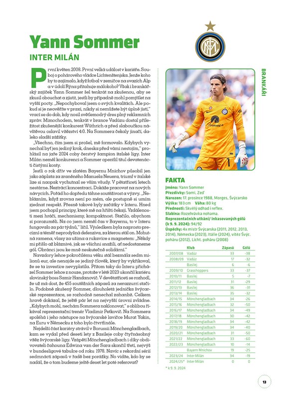 Nejlepší brankáři, obránci, záložníci, útočníci, trenéři a fotbalové hvězdy budoucnosti – ty všechny najdete v této ročence! Portréty téměř sedmdesáti sportovních osobností doplňují informace o pěti nejprestižnějších fotbalových ligách a evropských pohárech. A připravte se také na nálož profilů nejlepších českých a slovenských fotbalistů, podrobné statistiky a příběhy z Eura 2024!