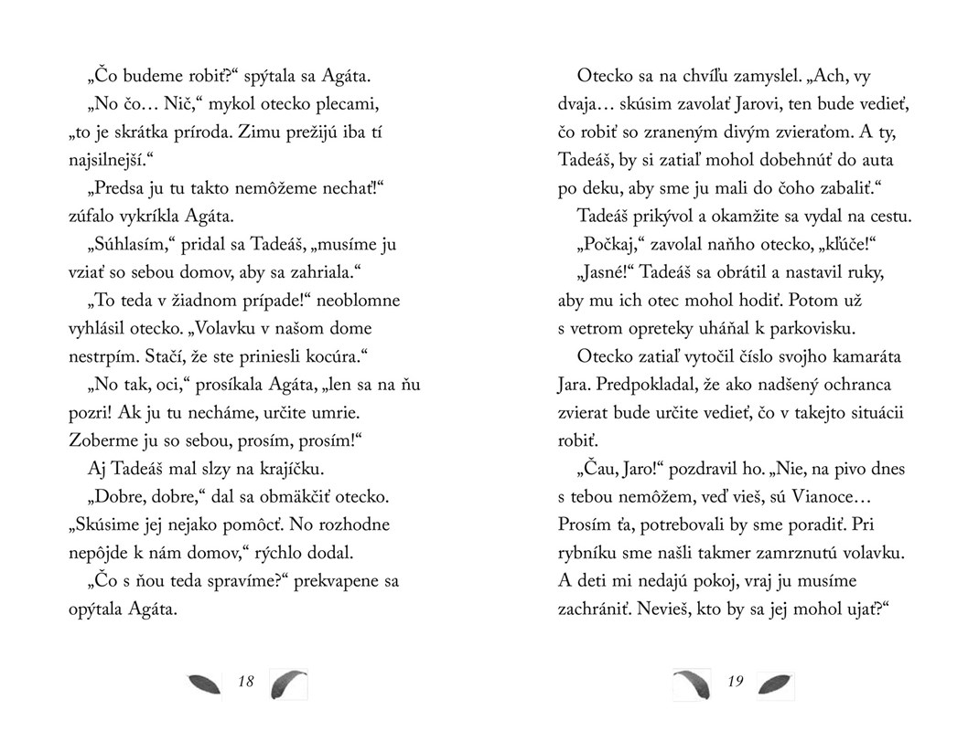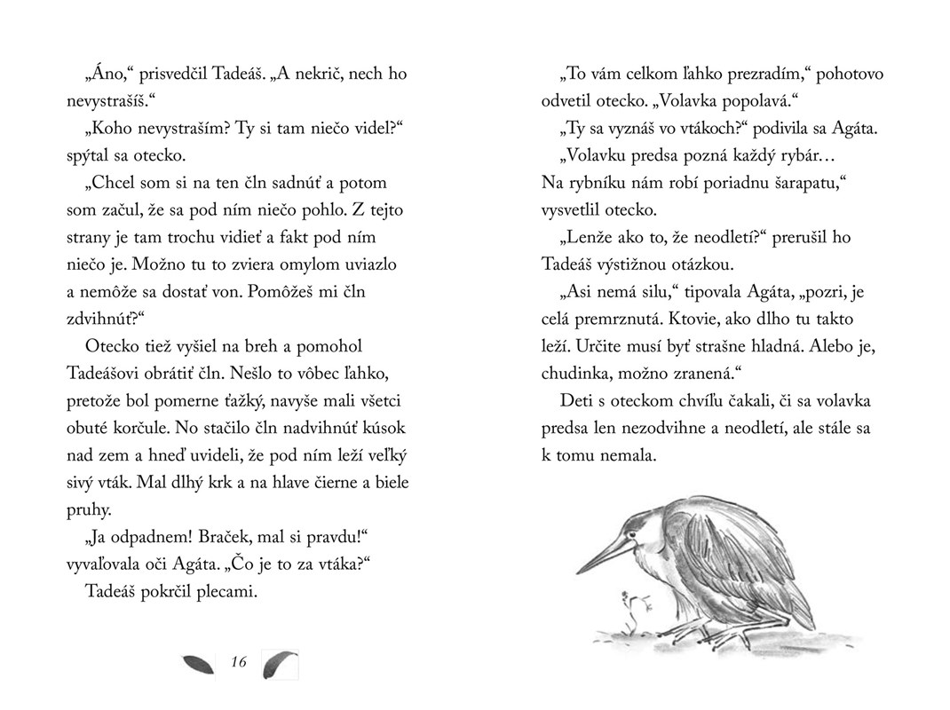 Vonku mrzne, len tak treští, a súrodenci Tadeáš a Agáta sa v sprievode otecka vyberú korčuľovať na rybník. Keď si Tadeáš na chvíľku sadne na obrátený čln, aby počkal na ostatných, začuje spod neho nezvyčajný škrabot. Spolu s oteckom čln obrátia a zistia, že je pod ním učupená premrznutá volavka. Je taká slabá a vyhladovaná, že sa ani nebráni, keď ju začnú baliť do deky, aby ju odviezli na záchrannú stanicu. Podarí sa im tam doraziť včas? Dokážu ošetrovatelia zachrániť premrznutého vtáka?