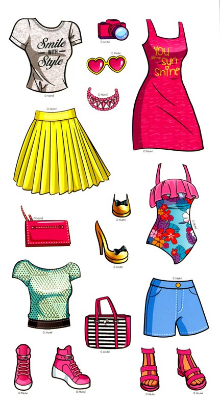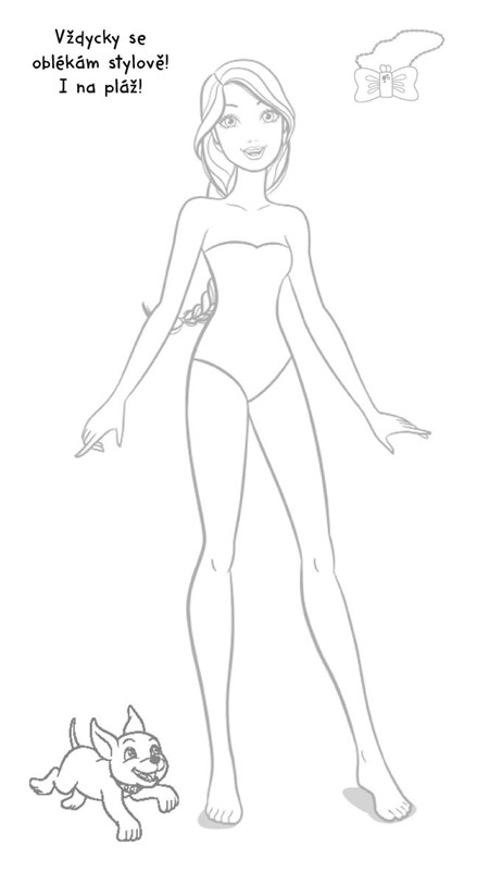 Vyber si látku, přilož šablonu a obkresli tvar vybraného kusu oblečení. Ten pak vystřihni a nalep na obrázek Barbie modelky. Obrázek vybarvi a doplň samolepkami. Kreativitě se meze nekladou…