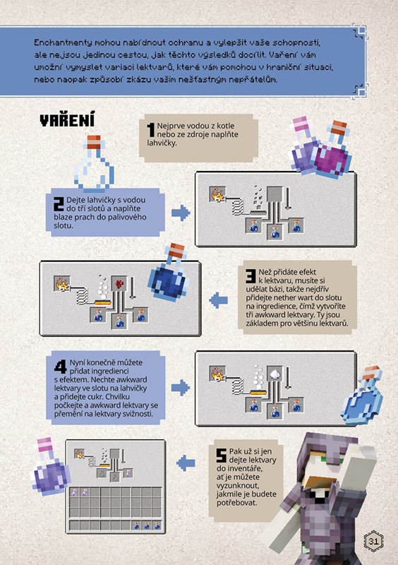 Rozvíjejte své schopnosti přežít v úžasném světě Minecraftu! Díky této knize se vaše bojové schopnosti dostanou na vyšší úroveň. Zdokonalíte se v boji se všemi nepřátelskými moby včetně mocného Ender draka a také si vyzkoušíte, jak se bojuje proti ostatním hráčům. Díky tomu už vás během hry nic nezaskočí!