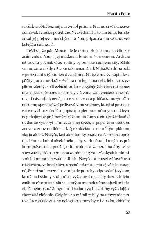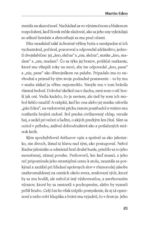 Román Martin Eden je príbeh muža, ktorý sa pokúsil zvíťaziť nad vlastnou nevedomosťou, a v tomto zápase uspel. Je to však i príbeh muža, ktorý sa pokúsil zvíťaziť nad nevedomosťou tých druhých, a v tomto zápase podľahol...