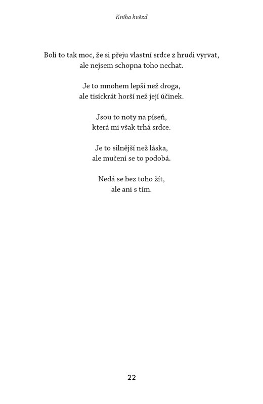 Sbírka básní, textů a myšlenek, které odrážejí pocity mladé dívky, jež se cítila jako hvězda, kterou každý přehlíží, protože nezáří nejjasněji na nebi.