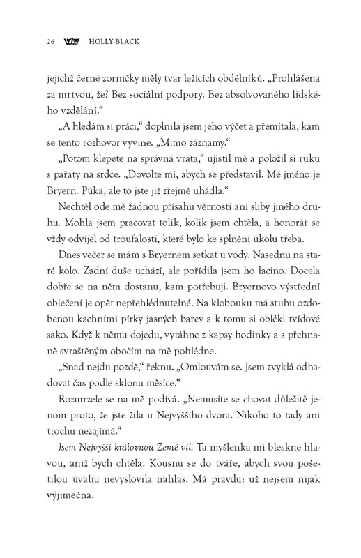 Získat moc je snazší než si ji udržet. Jude na to přišla, když ji zrada krále Cardana připravila o všechno. Je však odhodlaná vybojovat zpět, co jí patří – a příležitost se brzy naskytne. Pokud chce zachránit život své sestry Taryn, musí riskovat návrat mezi víly a vyrovnat se s přetrvávajícími city ke Cardanovi. Ale Elfhame se mění, Říše stojí na pokraji války, a když je probuzená nebezpečná kletba, Jude musí volit mezi vlastní ctižádostí a lidskostí.
