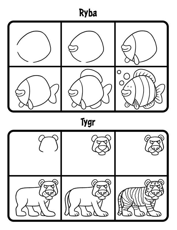 Každý návod je rozdělený do několika jednoduchých kroků, díky nimž získáš v kreslení jistotu a brzy zvládneš tvořit vlastní úžasné obrázky. Tak hurá na to!