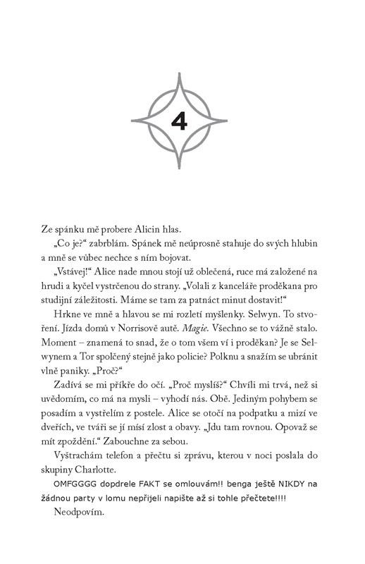 Jeho pokus však probudí Breeinu jedinečnou magii i pohřbené vzpomínky - té noci, kdy její matka zemřela, byl v nemocnici někdo jiný, kdo si říkal merlin. Teď když Bree ví, že je na matčině smrti víc, než prohlašovala policie, udělá cokoli, aby zjistila pravdu - i kdyby to mělo znamenat, že se sama infiltruje mezi mýtonoše a stane se jedním ze zasvěcenců. Na svou stranu dostane také odpadlického mýtonoše Nicka, který nemá spolek o nic radši než ona, a jejich spojenectví je vtáhne hlouběji do tajemství společnosti - a také blíž k tomu druhému. Ale když jí mýtonoši odhalí, že jsou potomky rytířů krále Artuše, a vysvětlí, že se blíží magická válka, Bree se musí rozhodnout, jak daleko kvůli pravdě zajde a jestli by měla své schopnosti použít ke zničení spolku - nebo se k němu připojit.