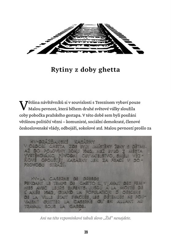 Čtenář má poprvé možnost seznámit se například s příběhem Hany Littenové či „kluků z půdy“, jejichž vzkazy a kresby přežily desetiletí. Dozví se, co byla tzv. šlojska, jaký význam měl dětský pavilon, o tom, kde v ghettu docházelo k popravám nebo jak nacistický propagandistický film pomohl potomkovi Gustava Frištenského poznat část rodinné historie.