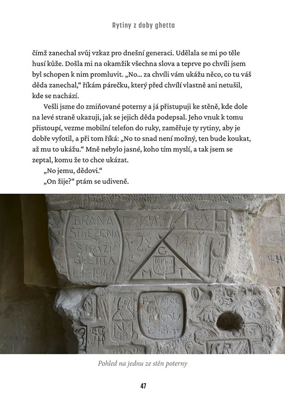Lukáš Lev už více než 16 let provází návštěvníky po místech, kde za druhé světové války existovalo terezínské ghetto. Neustále objevuje nové pozůstatky této smutné části historie původně pevnostního města – stopy minulosti, na něž se zapomíná a které podléhají zkáze času. Když se řekne „Terezín“, většině lidí dnes vytane na mysli Malá pevnost. Zhruba kilometr vzdálené bývalé terezínské ghetto však zůstává neprávem v pozadí zájmu. Autor se to svou knihou snaží aspoň částečně změnit. Odhaluje v ní zapomenuté příběhy vězňů, kteří zde za druhé světové války prožili tragické osudy. Pomocí identifikace nápisů na půdách, nalezených artefaktů, záznamů v archivech a především rozhovorů s přeživšími a jejich potomky skládá dohromady mozaiku temných časů.