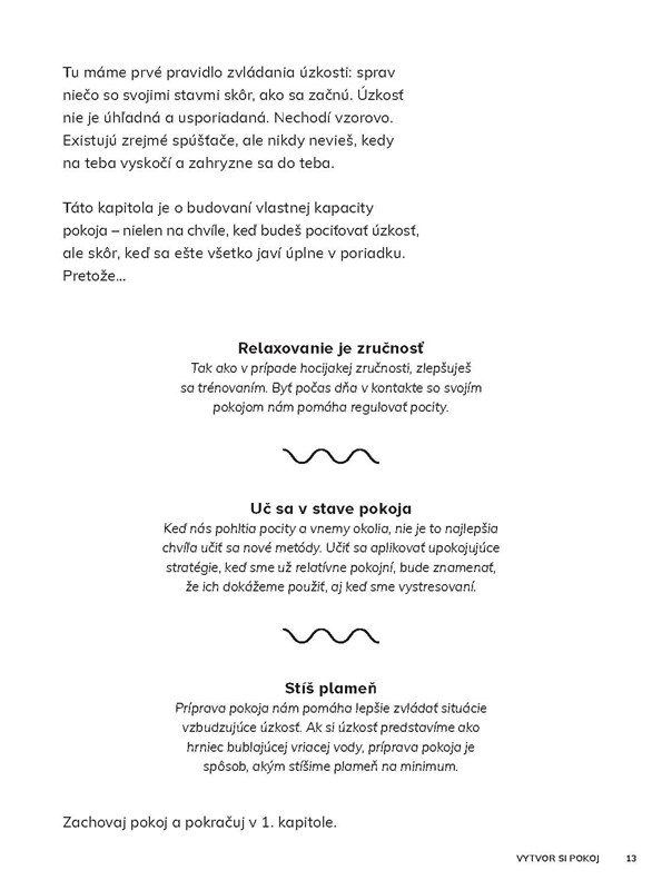 "Bojovať s úzkosťou je ako jesť jogurt paličkami na sushi: môžeš to skúšať tak úpenlivo, ako len chceš, ale nikdy nezískaš uspokojivý výsledok. Tak sa prestaň hrať na superhrdinu. Vzdaj sa, poddaj sa, ustúp. ... Priznaj si, že je v poriadku cítiť, čo cítiš."