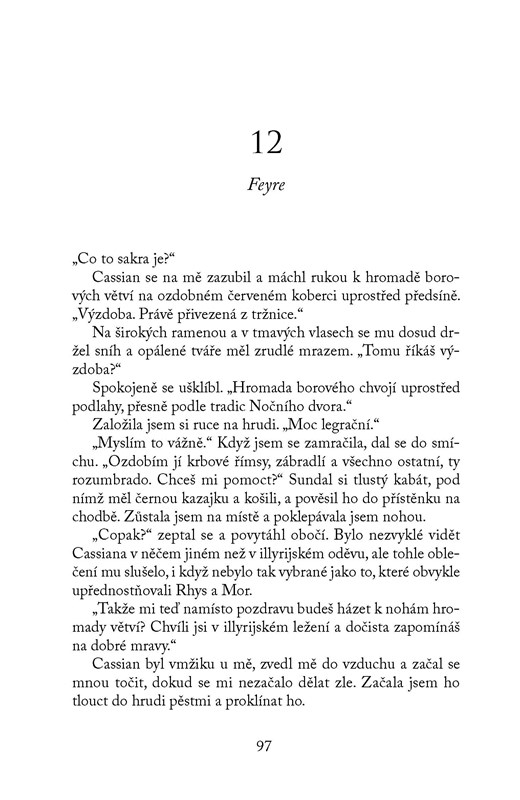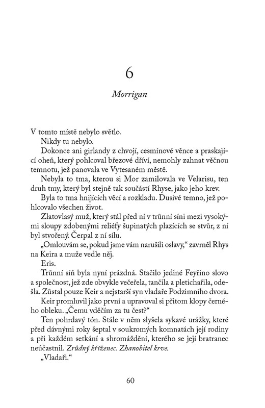 Feyre, Rhysand a jejich nejbližší přátelé pracují na obnově Nočního dvora i válkou zničené země. Ačkoli lidské královny i vílí vládci kují pikle, ve Velarisu alespoň na chvíli nastala sváteční atmosféra. Blíží se totiž oslavy zimního slunovratu. A právě v okamžicích klidu a míru se ukáže, že některé rány ještě nejsou úplně zahojené… Feyre čeká dlouhá cesta plná napětí, vášně, intrik a politikaření, než opravdu zavládne mír.