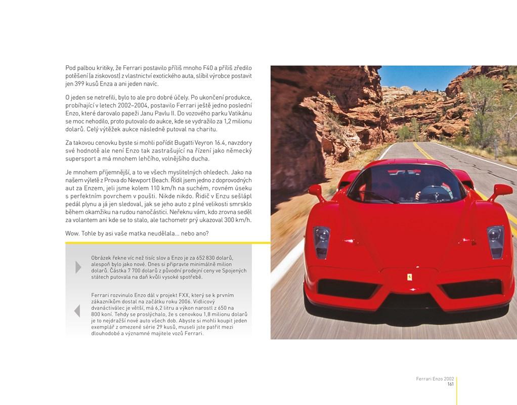 Přes 200 fotografií, doplněných poznatky designérů a konstruktérů, společně s komentářem a fotkami od Johna Lamma, respektovaného novináře píšícího pro legendární americký magazín Road & Track.