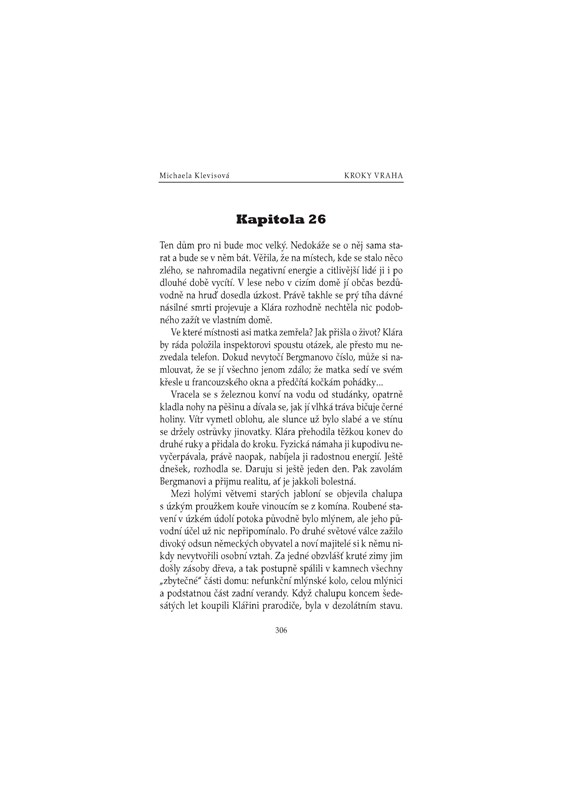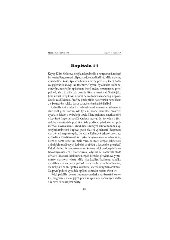 V pražském lesoparku byla v noci uškrcena mladá žena. Novinářka Julie Kellerová je zřejmě poslední, kdo s ní před vraždou mluvil. Oběť se navíc nápadně podobala její dceři Kláře. Je možné, aby se vrah zmýlil? Měla by se Klára Kellerová bát o život? Napětí se ještě vystupňuje, když nedaleko místa činu dojde ke druhé vraždě… Sympatický inspektor Josef Bergman rozkrývá složitý hlavolam a odhaluje staré hříchy, důmyslné lži a utajované vášně.