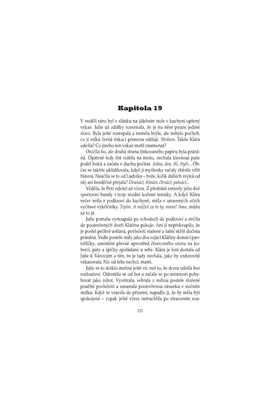 V zapadlé jihočeské vesničce se před čtrnácti lety odehrálo něco, o čem Eliščina matka už nikdy nech...